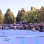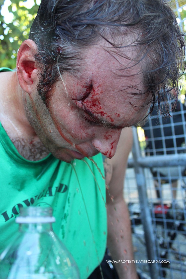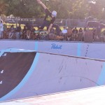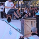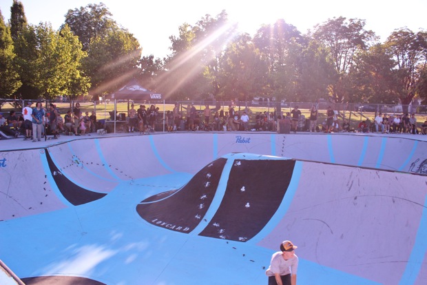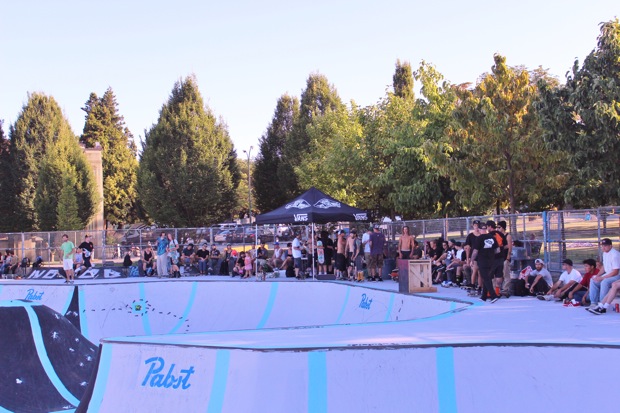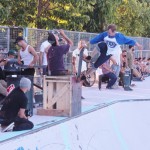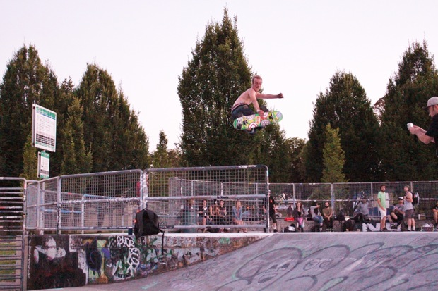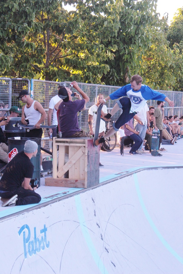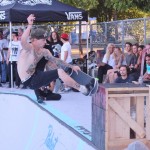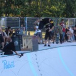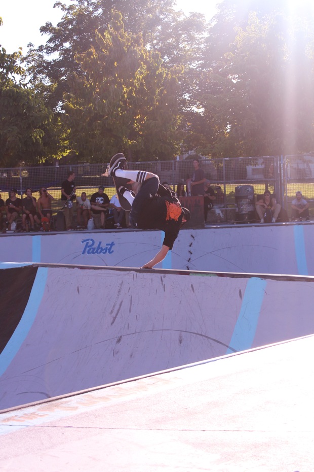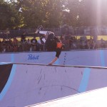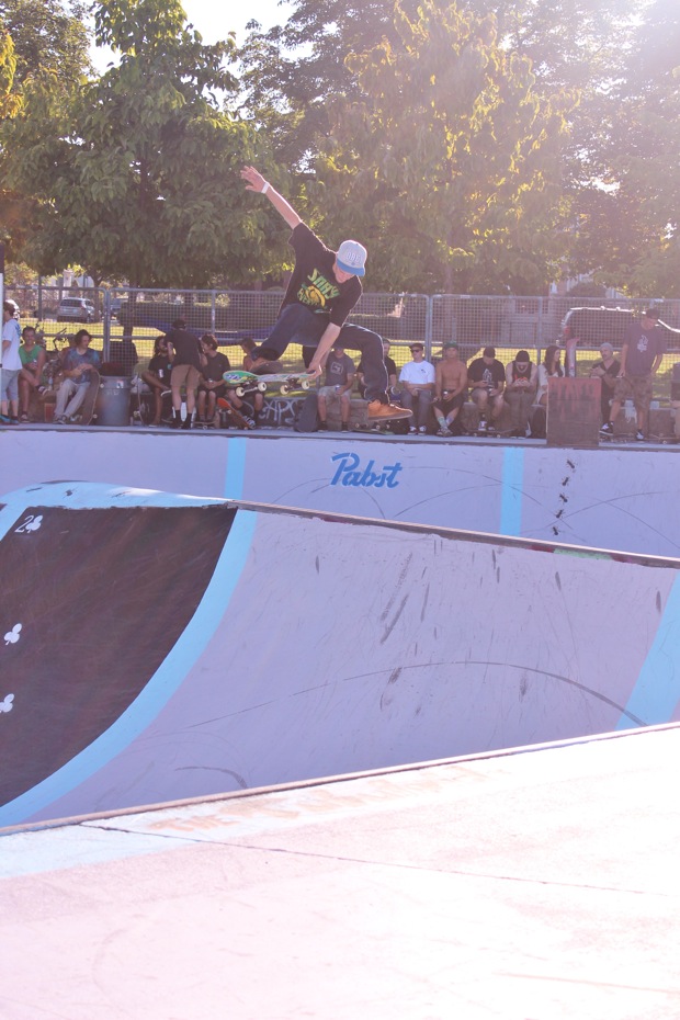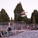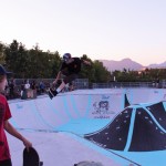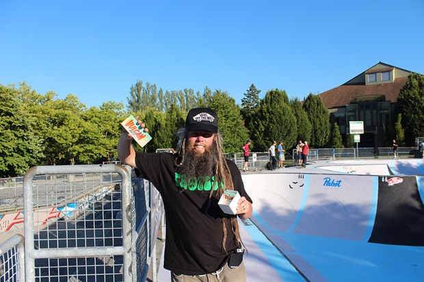 This company is focused on promoting skaters that are teens and children only. They are hosting competitions for kids 13 and under in 5 different countries this summer, and have created a magazine that will be hitting the shelves in the matter of weeks. Sean drove up from Toronto to meet me for the first time as we had been talking over the phone and by email for a while. We discussed a bunch of opportunities for us to collaborate, and it sounds like I will be writing for their magazine, along with some other amazing things. It was a great lunch meeting a Moose Winooski’s, and I had my oldest nephew Riley Robinson with me to be a part of this new venture. I look forward to being a huge part of this new Top Grom era. After the meeting, there was really only one place to go – the Barrie Skate Park. I remember it took years of meetings and petitioning and a bunch of work to get that skate park built back in the 1990’s, and they ironically finally put it in the year after I moved away to BC. So I’ve only ever skated it a few times, but I know which obstacles I like there. I’m still recovering a strange injury I had in the middle of June when I jammed my ankle at Seylynn, so this was the first time I had skated anything but tranny in a while. You could tell – my pop wasn’t poppin’ and my flips weren’t flippin’, so I tried to stick mostly to this weird rising quarterpipe they have there. The design of the Barrie Skate Park isn’t that bad, but the concrete job is terrible filled with lumps and bumps all over that shouldn’t be there. I really don’t like flat banks that are steeper at the bottom than at the top… I only filmed this 1 trick there, body varial noseblunt near the top of the quarter, and it wasn’t easy. Plus pushing as hard as I could across the entire park in 35 degree sun doesn’t help, but I did skate Bear Creek and Confederation Park for many years, so I know how to handle it. Thanks to the local kid Dylan for filming it.