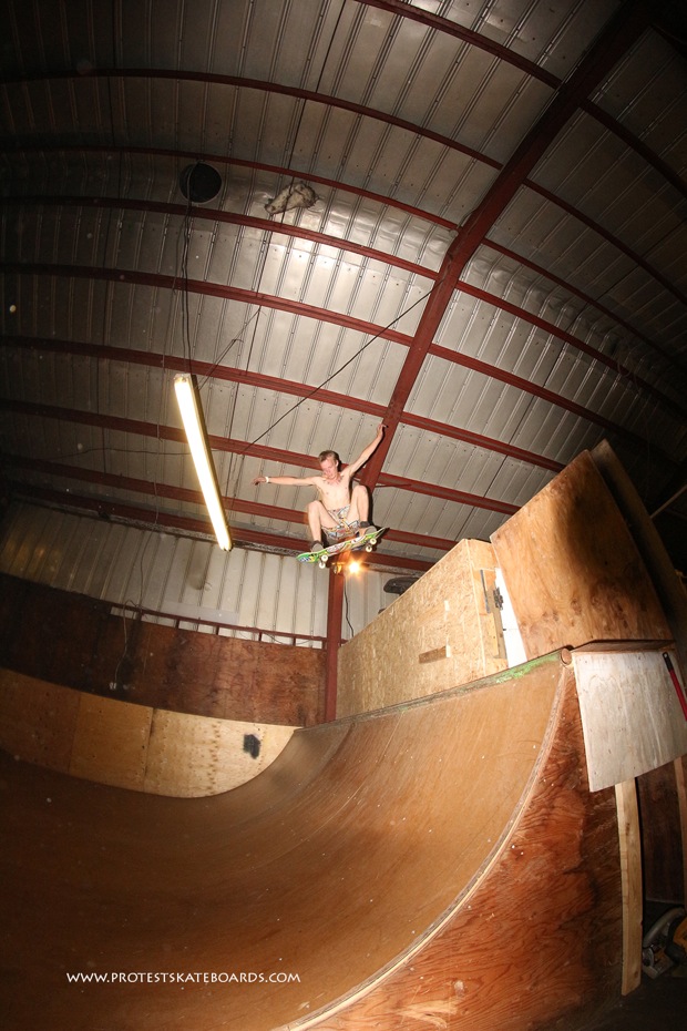 Jay is now the manager of Tropical North Surf Shop which is the longest lasting skateboard shop in the area and we swung in there the last day to show off some fresh Protest product. With our distributor Unit120 Distribution ready to sell our gear across Canada, hopefully you will see it in Trops pretty soon. The ramp was fun, pretty small, but really quick. Good for mellow sessions, and it was great to skate with Coulson again – it’s only been about 10-15 years. Anyone from the local area will remember the old days when there was a ramp in Jay Coulson’s barn. A lot of insanity went down in that spot before it collapsed.