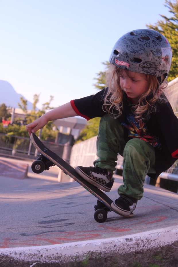 Me and Creelove dominated the game of ladder golf until the wee hours of the morning, and nobody got hurt. It was great to see everyone. The next day the same type of get together happened at my Mom’s house, but with about 100 less people. It’s hard sometimes to live so far away from all of our immediate family, and although we love the family we have created in BC, it’s always a nice treat to be bombarded with the originals. The night at my Mom’s ended with 3 1/2 year old Kaelen busting out his skateboard in the driveway and putting on a full demo. I grabbed the video camera and got this rare event on film, drop ins, fakie rides and he even landed a sweet primo stall. It was great to see him on his board showing off again, it’s been a while. On Tuesday before we headed back home we stopped by the old stomping grounds of St. Mary’s Elementary School and Kaelen continued to go for the gusto.