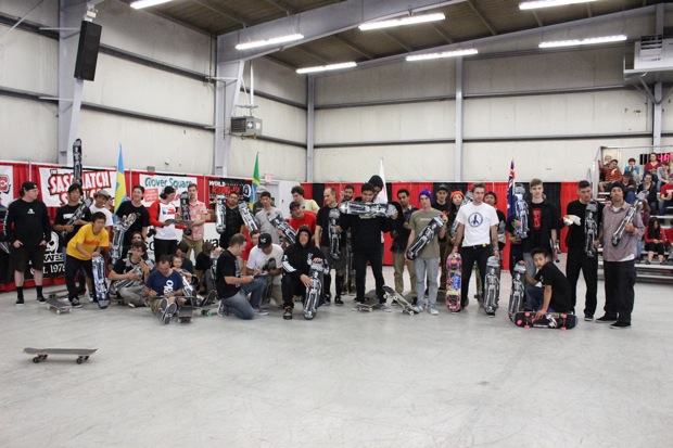 Big thanks to Monty Little and Kevin Harris for putting in the hours of labour to set this Freestyle Championship up, and also to house contestants from all over the world. I had the pleasure of being the main Videographer for this event and I will be releasing a short video/interview for each contestant as well as a 15 minute Recap Video of the entire event. I got to meet everyone that was there on a more personal level and really enjoyed my time with each of them. And to top it off I was honoured by Monty and Kevin with a Kevin Harris/Skull Skates Deck signed by everyone and a Bob Marley Freedom Flag – so stoked!! Be ready for all the videos to come out throughout the next week.