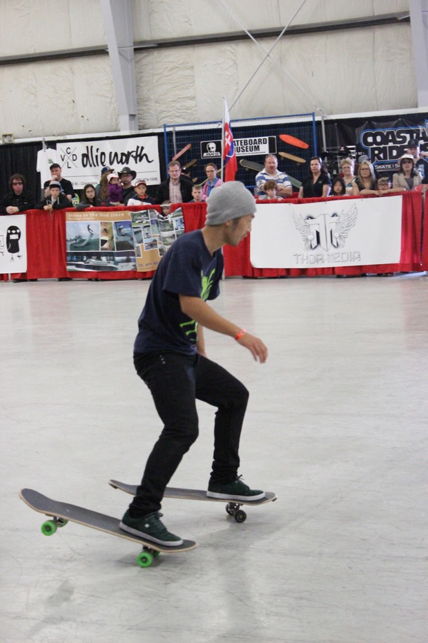 I gotta give it up to all the Pros, this was a difficult competition and even though they all love each other like family, everyone was there with the same goal to win. Per Canguru from Brazil went into the Finals in 2nd Place but had some difficulty in his runs and ended up in 5th. Masahiro Fujii from Japan destroyed the place and had the crowd going crazy all day every day and ended up in 4th Place. Mike Osterman from USA is one of the most solid skateboarders I’ve ever seen, he stomps every trick with more power than he uses to pop them and he pulled through for a 3rd Place finish. The biggest surprise of the contest was Seya Nakano from Japan who is not a sponsored Pro but entered into the Pro Category in hopes of success that would help make that sponsorship happen, and I think his chances of it happen are very high now since he put on an amazing Demo of how good he is and ended up in 2nd Place. So good!!