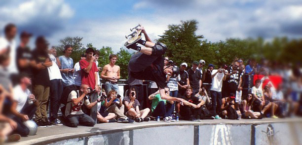 Well I rearranged everything on Saturday in order to make it out to Hastings Park on time to see the Birdman, Tony Hawk tear up Hastings again, but I showed up just as the demo ended. I think a lot of people were disappointed that the demo barely lasted 1 hour, and most expected a lot more out of the Birdhouse Team, but I’m sure they were tired and sore from the rest of this “Left Coast Tour” they just completed, and sometimes when you see a mega crowd like the one that showed up to Hastings Skate Park this July 28th, 2012, the best thing to do is run for your life and hide in your Tour Bus.